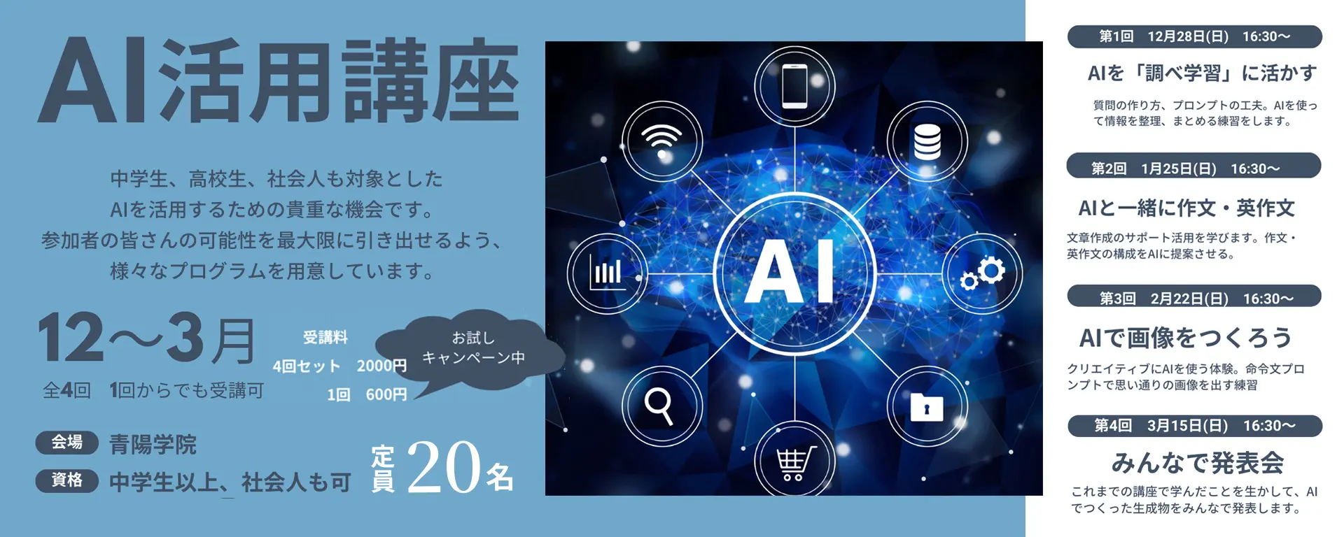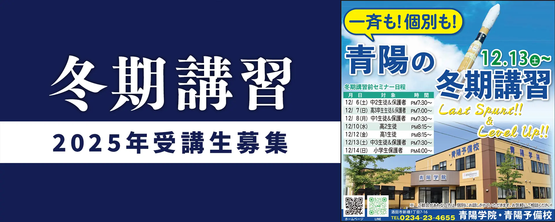 冬休みは、短いけれど学力をぐっと伸ばせる大切な時期。 青陽学院では、一人ひとりの理解度に合わせた冬期講習で、 「苦手の解消」と「自信づくり」をしっかりサポートします。 「勉強の習慣をつけたい」 「数学・英語の基礎を固めた…